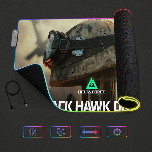 Tapis de souris de jeu Delta Force RGB LED – Grand tapis de bureau en caoutchouc antidérapant et imperméable pour PC et bureau