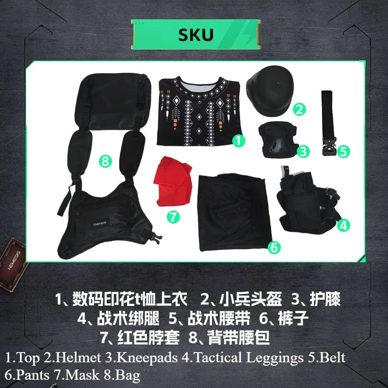 Transform into Asara Soldier from Delta Force: Hawk Ops with this complete cosplay uniform set, designed for anime and tactical game fans. This outfit includes all essential accessories and props, making it perfect for Halloween parties, cosplay conventions, carnival events, or themed roleplay.